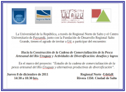 La Universidad de la República, a través de Regional Norte de Salto y el Centro Universitario de Paysandú, junto con la Fundación de Desarrollo Regional Salto Grande, tienen el agrado de invitar a Ud. a participar del encuentro: