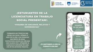 En el marco de octubre, Mes de las Personas Mayores, estudiantes de la Licenciatura en Trabajo Social del Departamento de Ciencias Sociales, Cenur Litoral Norte, invitan a leer el librillo: "Hogares De Ancianos, Relatos Y Experiencias", ahora en su formato online.