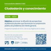 El pasado 3 de junio, la CSIC abrió la convocatoria 2025 del programa Ciudadanía y Conocimiento hasta el 15 de julio. Este instrumento está inspirado en el Art. 2 de la Ley Orgánica de la Universidad de la República (Udelar), en este sentido, este programa se orienta a promover la difusión de perspectivas académicas plurales que favorezcan la comprensión pública de problemas de interés general.
