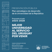 La Universidad de la República (Udelar) presentará su Plan Estratégico de Desarrollo y propuesta al país 2025-2029 el jueves 12 de junio a las 18 horas. Este plan acompaña la solicitud presupuestal de la institución para el quinquenio que comienza.