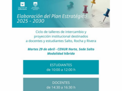 Facultad de Enfermería de la Universidad de la República invita a estudiantes y docentes de la carrera en en la sede Salto del Cenur Litoral Norte, sede Rocha del CURE y sede Rivera Cenur Noreste a ser parte de un ciclo para el intercambio de ideas y la proyección institucional para los próximos cinco años.
